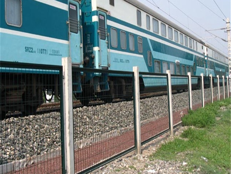 鐵路護欄網選用角鋼、矩形管與圓鋼,一般絲經3.5-5.5mm,孔徑75mm*150mm,邊框20mm* 30mm,表層處理熱鍍鋅、電鍍鋅、浸塑、噴涂等,還有就是涂料的質量,浸塑工人的技術也是至關重要的。