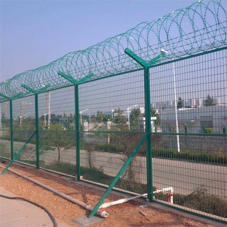 這種新型機(jī)場(chǎng)隔離網(wǎng)一般由鋼筋焊接網(wǎng)、Y型防護(hù)立柱以及蛇腹式刀刺網(wǎng)等幾大主體組成。既有良好的通透性,又能起到強(qiáng)有力的安全隔離防護(hù)效果,頂部加裝刀刺網(wǎng),同時(shí)起到了美觀大方的作用,與周?chē)h(huán)境以及任何景觀、設(shè)備都能完美相融合,因此機(jī)場(chǎng)鋼筋網(wǎng)圍界常被大量應(yīng)用于機(jī)場(chǎng)隔離,監(jiān)獄防護(hù)、軍事基地等特殊地帶的安全防護(hù)。