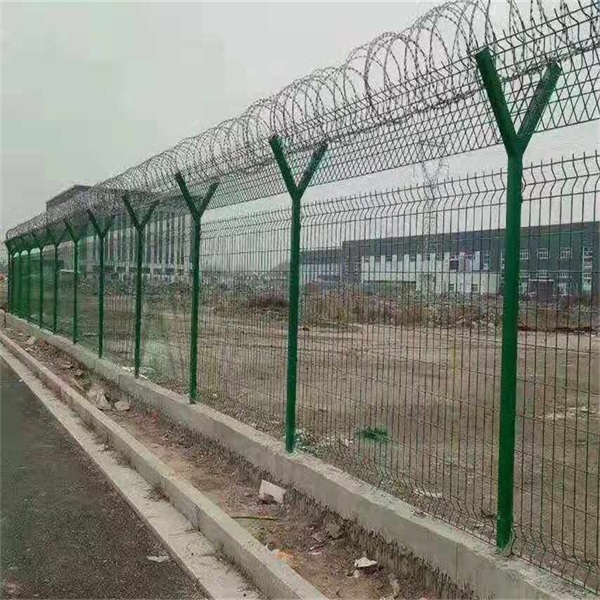 鋼絲網(wǎng)圍界是我們用在機(jī)場的一種為圍界,這種圍界在機(jī)場是比較固定的規(guī)格,要求比較嚴(yán)格,所以我們在定制和安裝都要比較謹(jǐn)慎。鋼絲網(wǎng)圍界是一種高安全隔離防護(hù)網(wǎng),一般由鋼筋焊接網(wǎng)、Y型防護(hù)立柱以及蛇腹式刀刺網(wǎng)等幾大主體組成 ,既有良好的通透性,又能起到強(qiáng)有力的安全隔離防護(hù)效果,同時(shí)美觀大方,與周圍環(huán)境以及任何景觀、設(shè)備都能 完美相融合,因此機(jī)場鋼筋網(wǎng)圍界常被大量應(yīng)用于機(jī)場隔離,監(jiān)獄防護(hù)、軍事基地圈護(hù)等特殊地帶的安全防護(hù)。下面給大家說一下鋼絲網(wǎng)圍界規(guī)格: