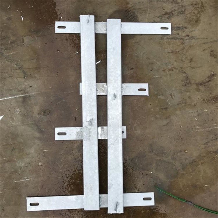 鐵路防護刺絲滾籠配件規格參數立柱支架采用50*30mm 壁厚2mm0235短形鋼管和寬50mm厚度4.5mm長度分別為246mm和428mm的兩塊0235扁鐵焊接制作