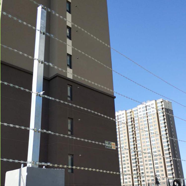 刀型刺絲又稱刀刺網是一種近年發展起來的防護、隔離能力較強的新型防護網產品。刀刺網它采用鋼板沖壓成型包附于熱鍍鋅鋼絲(筋絲)之上,由銳利尖角鍍鋅鋼板或不銹鋼薄板做刀片,高張力鋼絲做芯線組合而成的。鋒利的刀型刺由雙線扣裝后成蛇腹狀,既美觀又讓人不寒而栗。起到了很好的阻嚇作用。邊境鐵絲網以刺絲滾籠采用刀片刺繩繞圈后相臨兩圈每隔120°用刺絲連接卡固定,張開后形成蛇腹網狀,閉合后刀片刺繩圈徑為50cm,邊界刺鐵絲網價格,張開后每交叉安裝間距20cm,直徑不小于45cm交貨時,刺絲滾網(籠)成品應為按此條要求用刺絲連接卡固定好的成籠。刀片刺繩由沖切鋼板采用機械壓;普通鐵絲(上鋅量200g)絲徑為12號熱鍍鋅鐵絲,花為14號熱鍍鋅鐵絲,花為四,花間距8-10cm,長1.7-2cm,每個花距4個扭股,鐵絲截面每平方米鍍鋅量在200g以上,每卷刺鐵絲重量25±1kg,其他參照GB/T343-94,GB/T15393-94標準執行。特殊型刺鐵絲經線為13號高碳熱鍍鋅鋼絲,絲徑2.5mm,片厚度0.5mm,長度22mm,間34mm,刺高度9.8mm,鍍鋅含量在200克/平方米以。