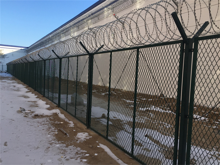 面。在圍墻上面安裝監獄鋼網墻也分為兩種,一種是直接在圍墻頂部用法蘭底座固定。另外一種就是在圍墻的側面安裝固定。安平縣艾瑞金屬絲網制品有限公司生產安裝經驗豐富,可根據不同地區、地形給您專業的服務,讓您的施工過程更順利更簡便。期待與您的合作。