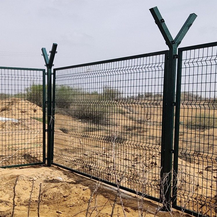 7、總高度3.6米防沖跳隔離網:主體結構采用立式Y型柱,表面處理:原材料網絲和立柱采用浸塑處理,表面無針孔、開裂、漏塑、塑液流淌等不良現象。