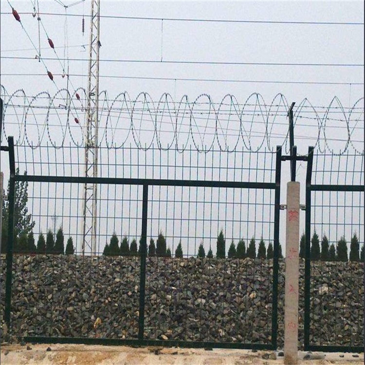 鐵路防護柵欄主要可以分為鍍鋅防護柵欄、浸塑防護柵欄、鋼筋混凝土柵欄三大種類。其高度和規(guī)格根據(jù)不同的鐵路類型和速度有不同的要求。例如,速度大于120km/h的線路鐵路防護柵欄全線布置,設(shè)置位置在鐵路用地邊緣以內(nèi)0.5m處,鍍鋅、浸塑防護柵欄高度為1.8m;而新建鐵路時速200公里以上的鐵路,則使用2.2米高的鋼筋混凝土防護柵欄,并加設(shè)0.5米的刺絲滾籠以增強防護能力。