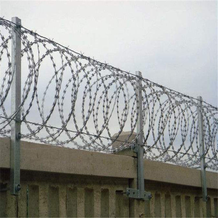 是工程鐵路隔離圍欄的配套產品,在工程鐵路防備隔離柵的上方加裝刺絲滾籠,是較安全配套的流程。刀片刺繩根據安置方法不同可歸納:(蛇腹式)螺旋式刀片刺繩,直線型刀片刺繩,平板式刀片刺繩,刀片刺繩焊接網等。刺繩的起源就是使用于農業,大家根據刺繩將農田歸納不同的小塊。本設施具有防腐、防老化、***曬、***候等優點。比如說許多人在家里院墻上圍上一圈刺繩,必須用在防止有人翻過院墻進入院內。