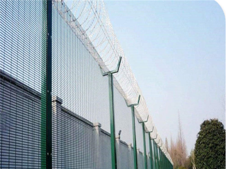 看守所358密紋護欄網(wǎng)中358是什么意思?密紋護欄網(wǎng)也叫358護欄網(wǎng),是一種外型高大的焊網(wǎng),上部有保護性尖刺網(wǎng),網(wǎng)線為鍍鋅鋼絲,加pvc涂塑處理,在保護美觀的同時,保證了最大程度的堅固與耐用。