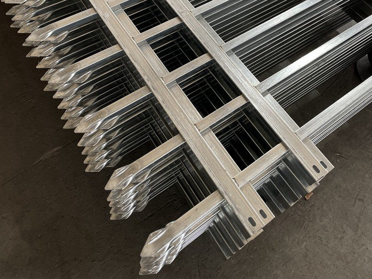 藍白圍墻方管組裝護欄水洗除去鐵藝工件表面的酸水及其它附著物、上助鍍劑再次清洗工件表面,保證表面在鍍鋅之前不在生銹。烘干進步鐵藝工件溫度,避免鐵藝表面水分過多,在鍍鋅時發作爆炸。熱浸鋅工件浸泡于440℃-470℃熔融的鋅液中,抵達一定時間后提出,鐵藝工件表面被獲得一層鋅鐵合金層和純鋅層鍍層。
