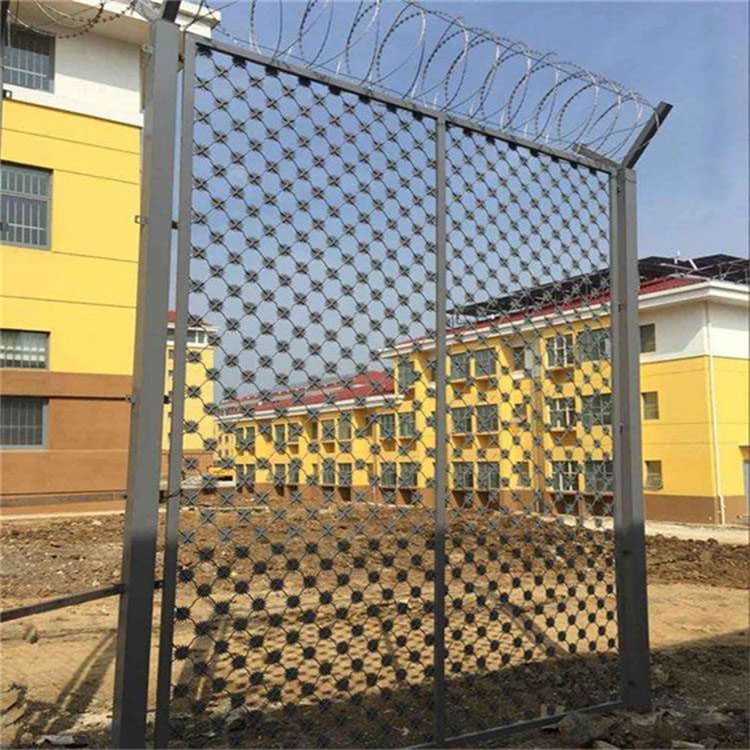 監(jiān)獄隔離網(wǎng)又稱作Y型安全防御護網(wǎng),由V型支架立柱,加強型焊接片網(wǎng),安全防盜連接件和熱鍍鋅刀片刺籠組成,強度和安全防御性級別高。近年來,被廣泛應(yīng)用在監(jiān)獄,軍事基地等高安全場所。