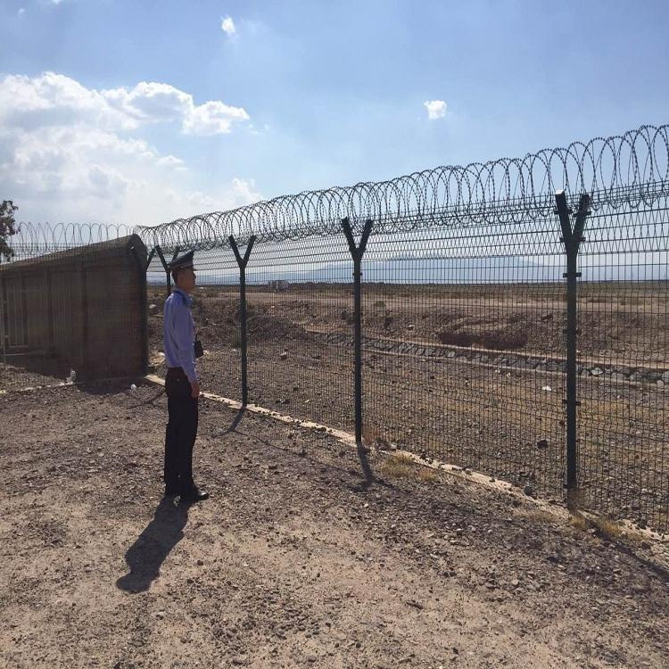 機(jī)場飛行區(qū)隔離圍界的常規(guī)標(biāo)準(zhǔn)要求:1.機(jī)場隔離圍界圍欄內(nèi)側(cè)、外側(cè)的凈高度均應(yīng)不低于2.5米。2.國界網(wǎng)的對外面應(yīng)設(shè)有醒目的禁止攀越警告的標(biāo)識(shí)標(biāo)牌。3.機(jī)場圍界的總高度一般是3米,立柱之間的間距3m,為了確保國界安置后的穩(wěn)固,機(jī)場一般要求每兩根立柱要設(shè)立一道斜摚,轉(zhuǎn)彎處每個(gè)立桂都要有一道斜撐。