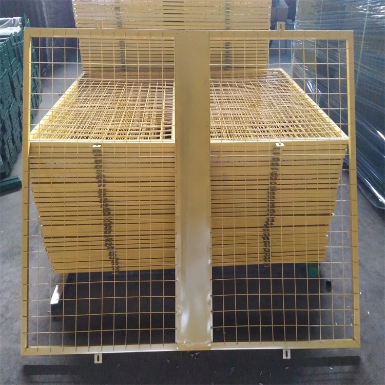 道路基坑護欄安裝后,護欄上邊與立柱平齊,下邊距地面20cm, 兩立柱間距2米,所使用原材料均采用標準材料,制作嚴格按圖施工,尺寸正確,焊接點車固,達到安全防護之目的。網片設計為黃色、立柱為紅色,均為噴繪,以達到紅白相間的警示效果。網片網50*50mm鋼絲直徑為3.5mm。可移動基坑護欄100米,固定護欄1361米,基坑護欄可移動護欄與國定護欄尺寸一致兩端固定處加20cm三角支撐。支撐穩固,8cm方管支撐。