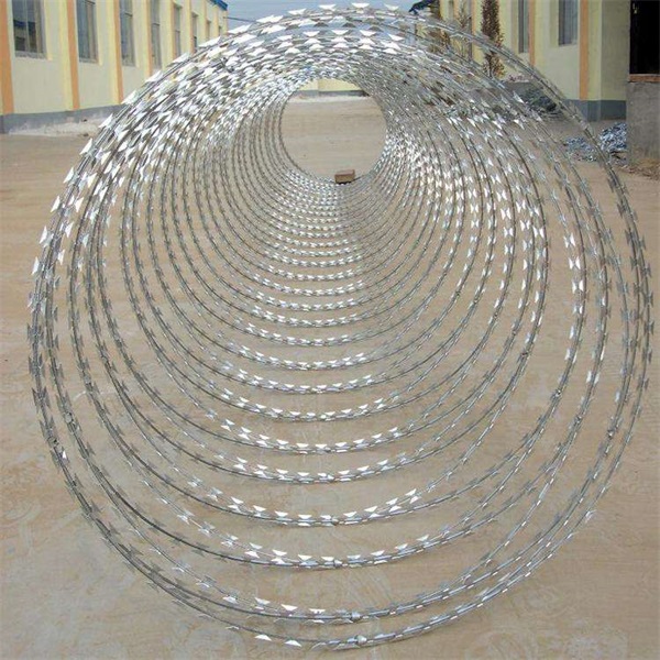 刀片刺網分為BTO與CBT兩種,BTO包括 BTO-10 BTO-18 BTO-22 BTO-28 BTO-30: CBT包括 CBT-60 CBT-65 BTO-22為國內的常用型號(其它型號也可以訂做)刀片刺繩的特點:刀片刺繩又名刮刀型刺絲,是一種發展起來的防護、隔離能力較強的新型防護網產品。鋒利的刀型刺由雙線扣裝后成蛇腹狀,既美觀又讓人不寒而栗。起到了很好的阻嚇作用。同時該產品具有美觀、防阻效果好、施工便利等優點。刀片刺網又名刀片刺繩是一種發展起來的防護、隔離能力較強的新型防護產品。