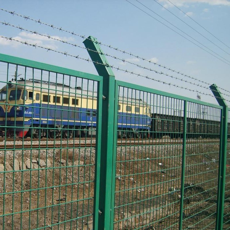 鐵路護欄網材質:優質低碳鋼絲、鋁鎂合金絲。表面處理主要有浸塑、鍍鋅、噴塑三種方式.