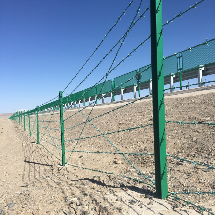 安裝:本次刺繩護欄網安裝應控制在每米圍界范圍內有5個刺元,即刺制安裝間距200mm,要求刺圈間距均勻,上下平直。刺圈固定件