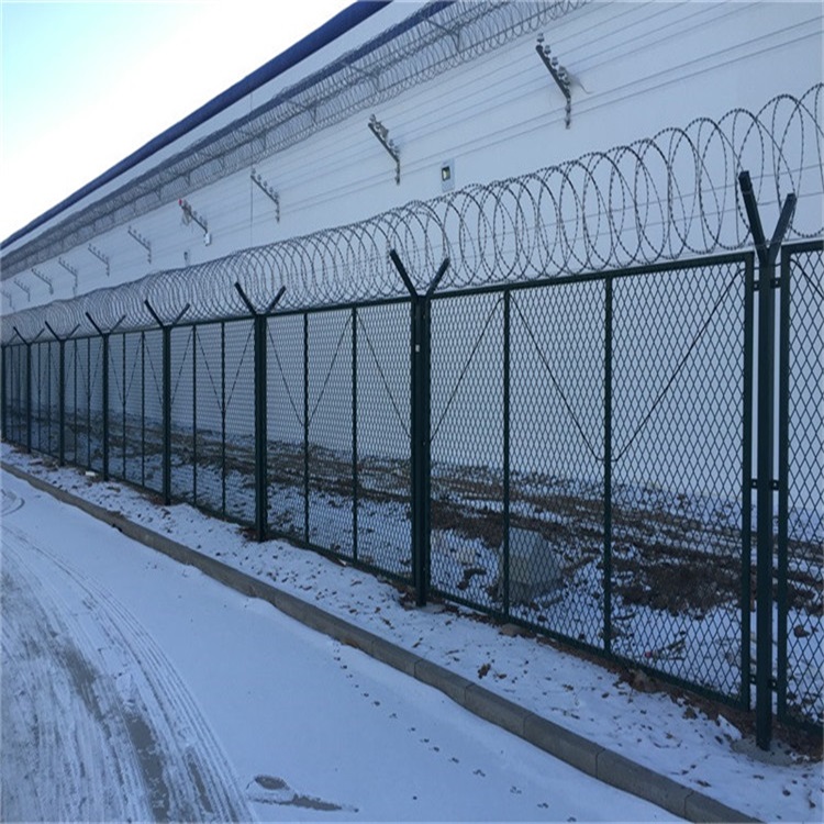 監(jiān)獄防沖撞鋼網(wǎng)墻又稱作“Y型安全防御護(hù)網(wǎng)”,是由V型支架立柱,加強(qiáng)型焊接片網(wǎng),安全防盜連接件和熱鍍鋅刀片刺籠組成,強(qiáng)度和安全防御性級(jí)別很高。近年來,被廣泛應(yīng)用在監(jiān)獄,軍事基地等高安全場(chǎng)所。