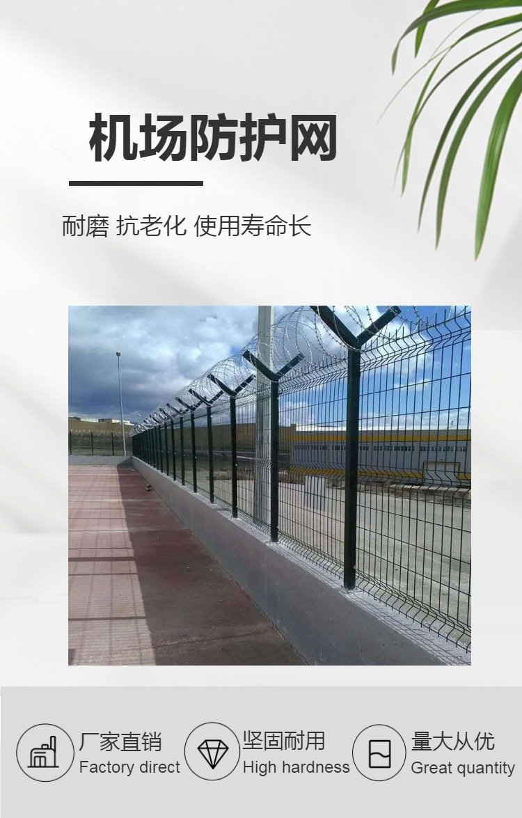 2.穩固結實:機場護欄首要性能就是堅固實用,機場內必須維持客機運輸的井然有序,因此護欄網必須要穩固結實。固定方式可以采用立柱底盤固定,邊框連接地梁二次加固,或者是直接采用預埋,混凝土澆筑,無論是哪一種方式都能將防護網牢牢的固定好,確保安全性。