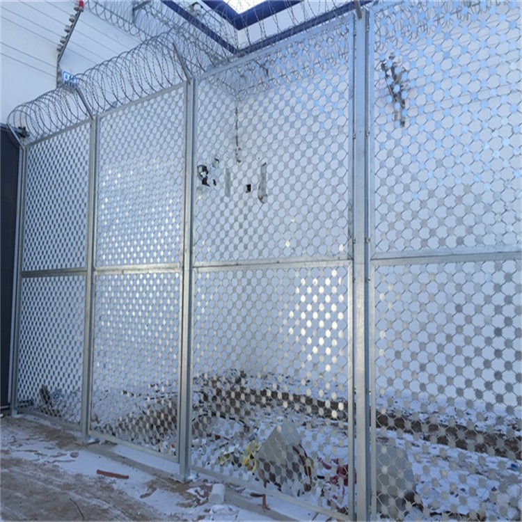 梅花刺隔離網又稱作太陽花隔離網墻,是由V型支架立柱,加強型焊接片網,安全防盜連接件和熱鍍鋅刀片刺籠組成,強度和安全防御性級別很高。近年來,被廣泛應用在監獄,軍事基地等高安全場所。注:如果在監獄護欄網頂部加裝刀片刺絲、刀片刺繩后又很好的增強了安全防護性能。