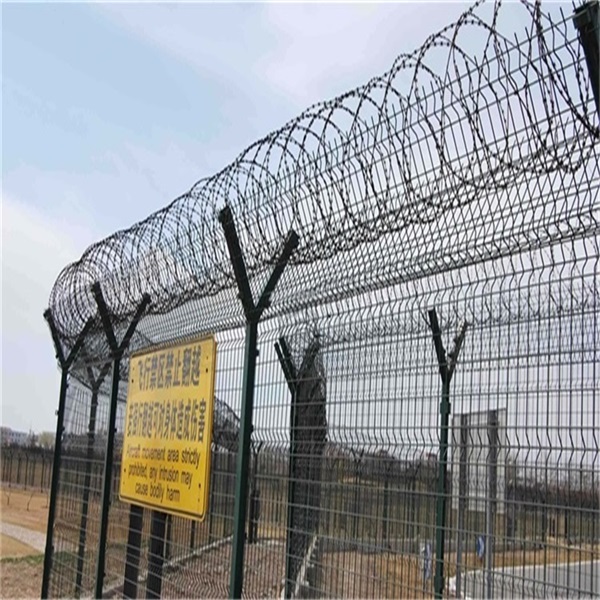 2、機(jī)場(chǎng)飛行區(qū)物理圍界頂部應(yīng)設(shè)有防翻越裝置,并加裝蛇腹型刀刺圈,刺圈直徑500mm,刺圈間距20cm—25cm,應(yīng)使用標(biāo)準(zhǔn)件與網(wǎng)片聯(lián)接牢固。