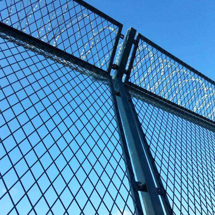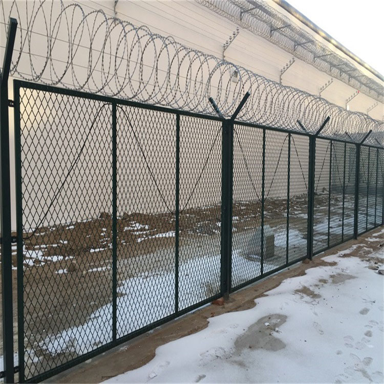 監(jiān)獄鋼網墻款式-梅花刺鋼網墻作用總體的有,普通監(jiān)獄鋼網墻,太陽花刺鋼網墻,菱形焊接刀片刺網,螺旋式刀片刺鋼網墻,鍍鋅358監(jiān)獄防攀爬鋼網墻等等,但總得來說,要有大于5.0mm粗的絲徑,或者是刀刺網焊接,另外立柱不得少于2.0mm壁厚,直徑不低于60*60mm,頂部加裝V型架,在頂部V型架上裝有刀刺網;而對于太陽花刺鋼網墻來說,在網片的絲和絲的交叉處,焊接類似太陽花的刀片,起到防攀爬的作用。