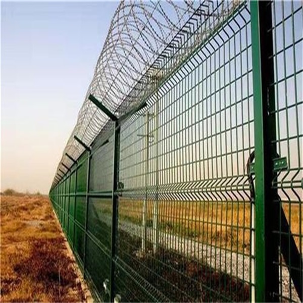 3、飛機場圍界隔離的總高度一般是3米,立柱之間的間距3m,為了確保圍界安置后的穩固,機場一般要求每兩根立柱要設立一道斜撐,轉彎處每個立柱都要有一道斜撐。