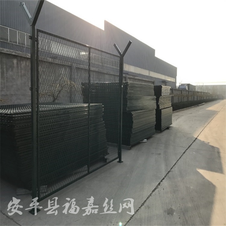 監(jiān)獄防攀爬圍欄網(wǎng)設(shè)計(jì)要求整體連貫一致,框網(wǎng)方正,對(duì)角線誤差不大于2cm。隔離網(wǎng)網(wǎng)頁(yè)安裝離地距離5-8cm,框網(wǎng)與立柱采用螺栓固定邊耳式連接網(wǎng)頁(yè)每邊與立柱連接點(diǎn)不少于六處。